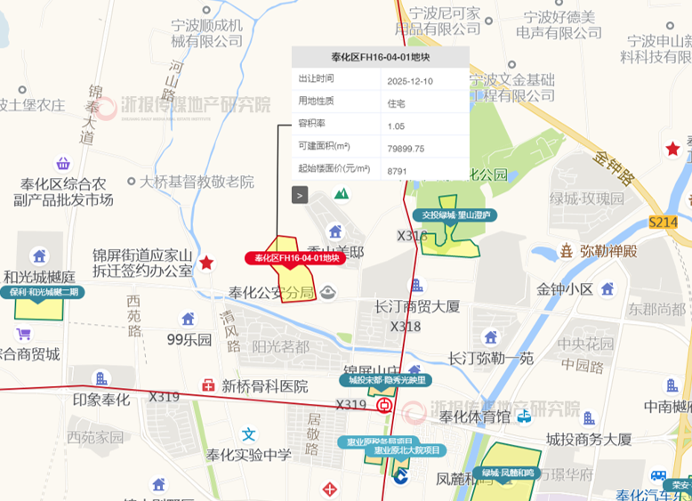 | 甬储出2025-036号 | 奉化区FH16-04-01地块 | 76095 | 住宅 | 79899 | 8791 | 一类住宅计容建筑面积不超过 71000㎡。 | |||||